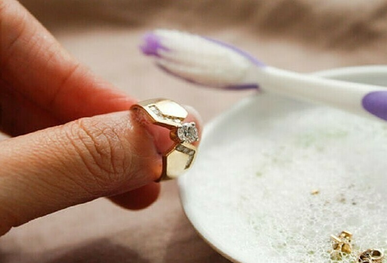 Хлор может испортить оправу бриллианта, поэтому избегайте контакта изделий с отбеливателем или другими бытовыми химикатами. Можно чистить бриллианты, растворив в тёплой воде порошок для деликатной стирки и используя мягкую зубную щетку.